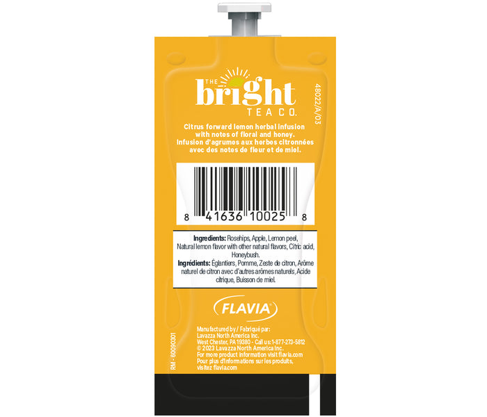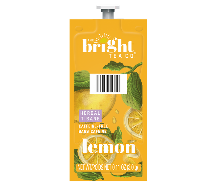 Bright Tea Co.® Lemon Herbal Tea is a naturally decaffeinated, citrus-forward herbal tea with notes of florals and honey. Made for your Flavia® Brewer, this Freshpack produces a single-serve tea.