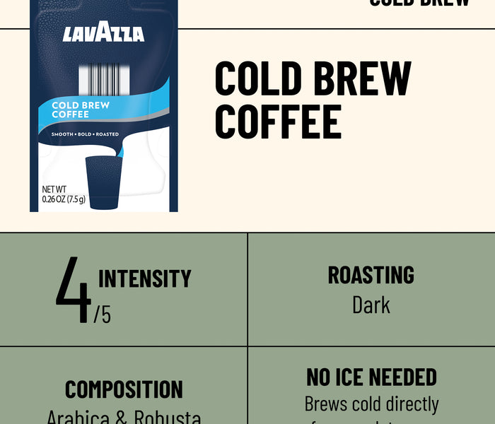 Lavazza Cold Brew Coffee is smooth and aromatic featuring notes of cocoa and caramelized sugar. Made for your Flavia® Brewer, this Freshpack is made from real coffee beans with no artificial flavors or sweeteners.