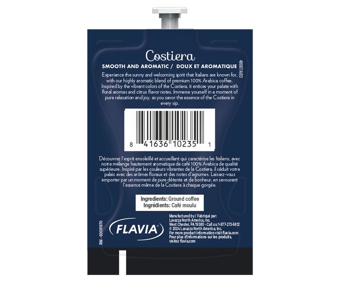 - INGREDIENTS: Lavazza Costiera Gran Aroma Flavia® Freshpacks contain coffee.