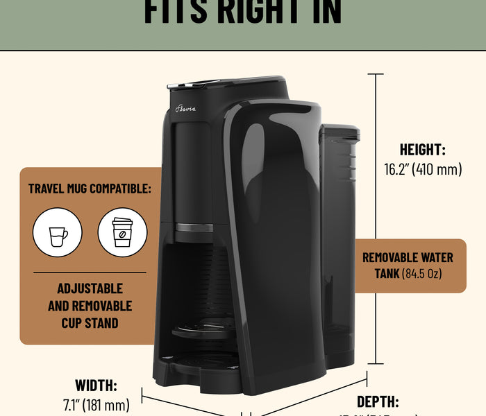 Our NEW Flavia® Aroma Brewer offers a full range of café-style drinks in a small and compact design for any space - from home offices to conference rooms to kitchen counters. More than just a coffee maker; brew drip coffee, tea, latte, and hot chocolate in four sizes, all ready in 60 seconds or less. Enjoy the newest features - like a 12 oz brew and brew over ice options. Only compatibile with Flavia® Freshpacks.