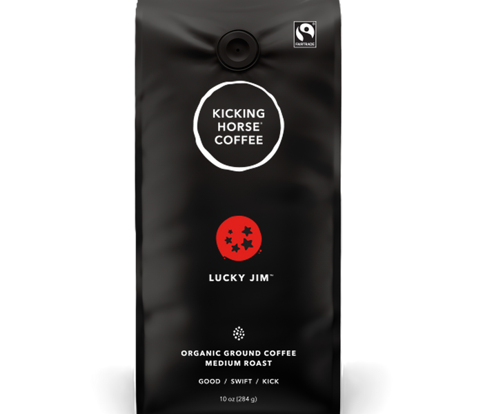 Lucky Bucker. Our lucky stars were the ones he saw. Way back when in the Rockies, explorer Jim got a swift dose of horse-hoof to the head. Thought dead, legend says a kick-ass cup woke him up. Happily struck with coffee luck!