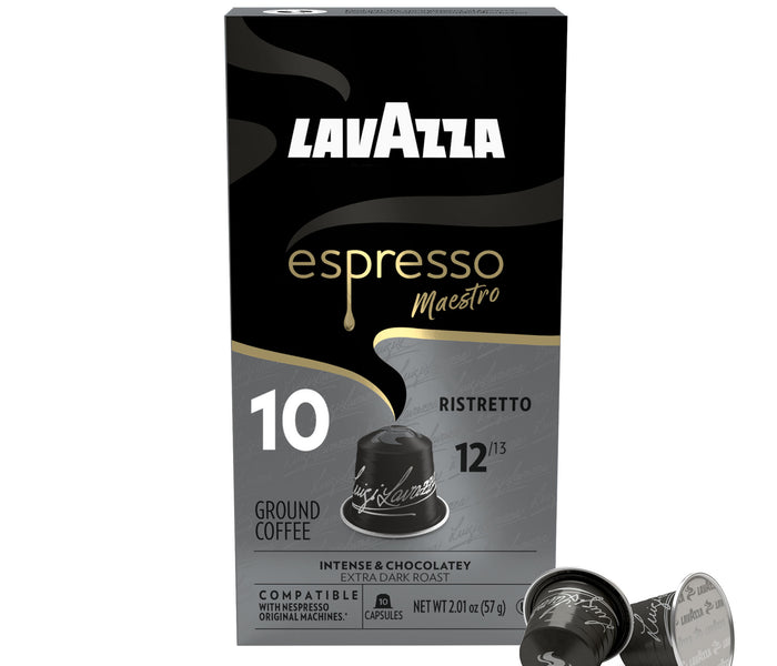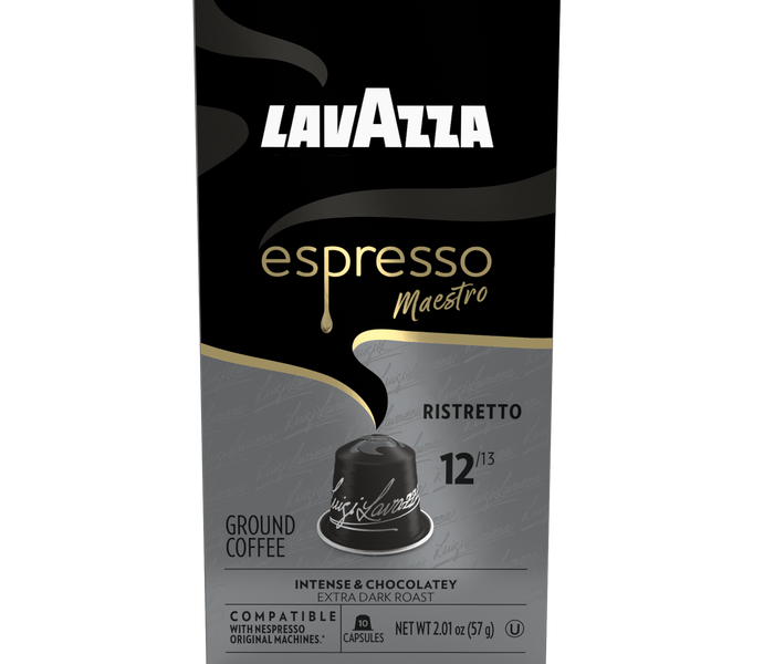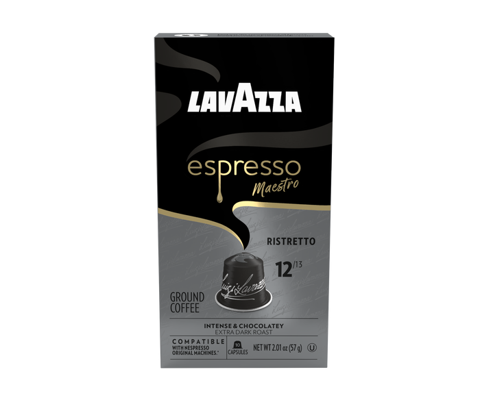 Ristretto is a full-bodied dark espresso roast featuring aromatic notes of chocolate and caramel. This Arabica and Robusta blend is sourced from Central/South America, Africa, and Asia and is compatible with Nespresso* Original Machines.