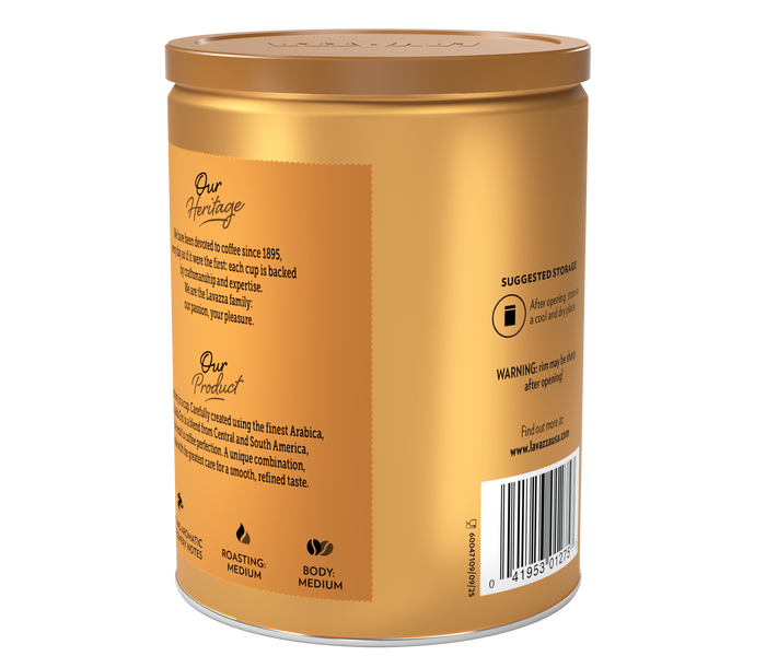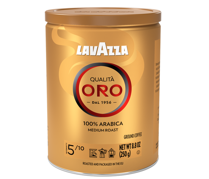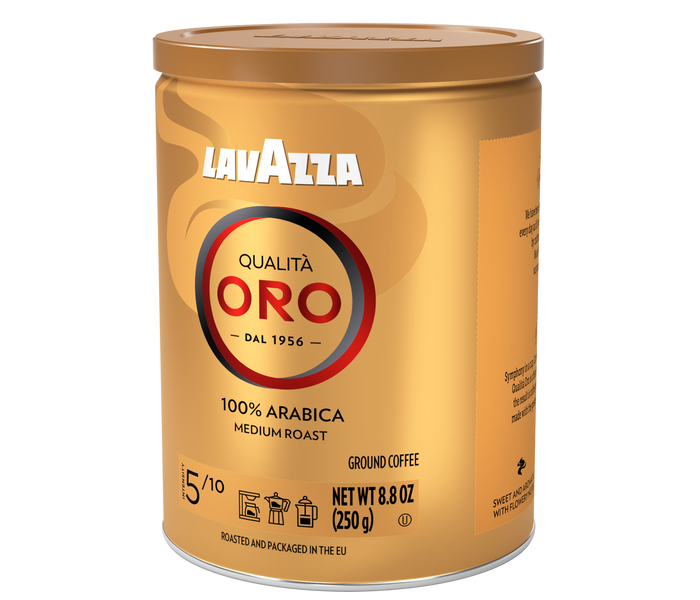 - QUALITÀ ORO: An 8.8 oz ground coffee tin ideal for espresso and drip preparation