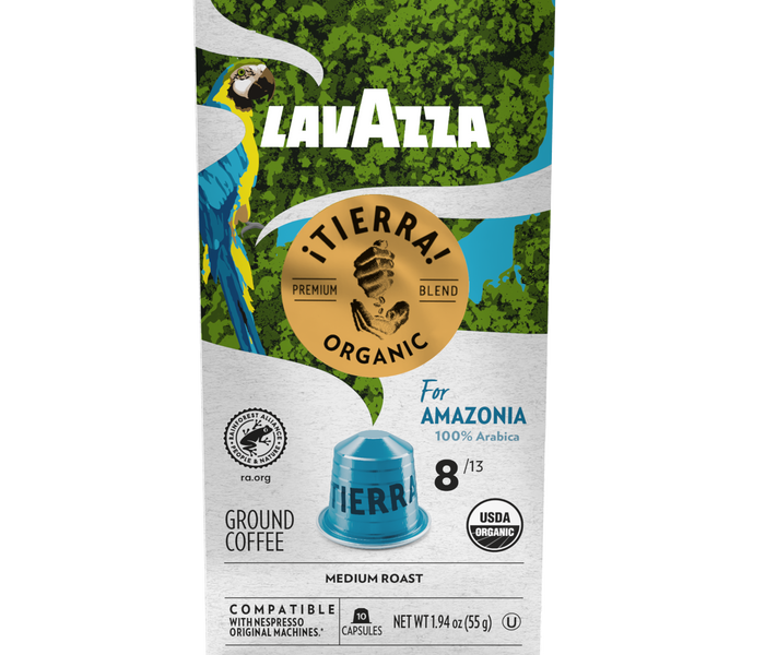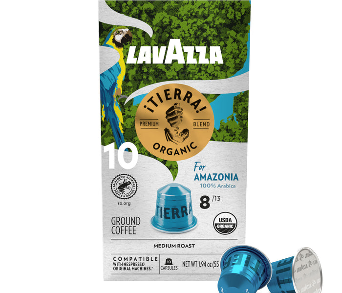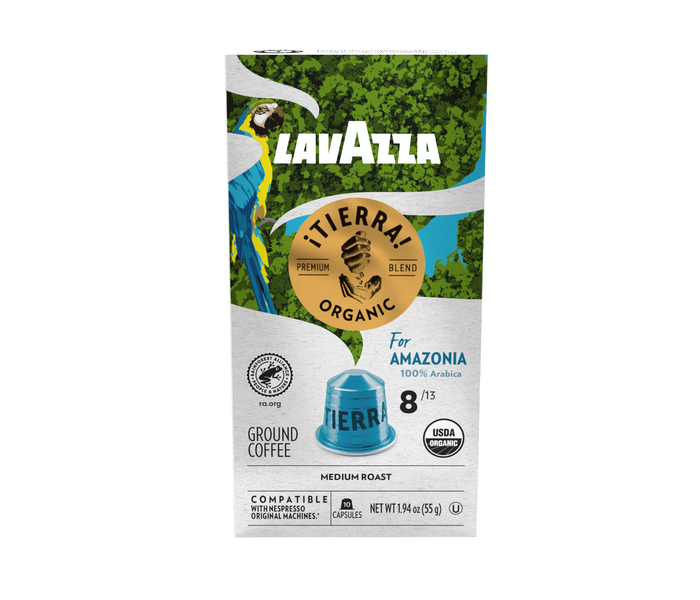 A balanced medium roast featuring aromatic notes of chocolate and caramel. This hand-picked coffee blend is sourced from Peru and is compatible with Nespresso* Original Machines. ¡Tierra! is Lavazza's collection of all USDA-organic blends from selected origins. ¡Tierra! blends are Rainforest Alliance (RFA) certified, compliant with standards for sustainable agriculture that promote environmental responsibility, social equity, and economic sustainability.